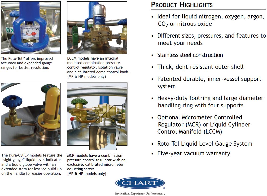 1 產(chǎn)品分型清晰——查特液氮罐各種型號(hào)分型主要根據(jù)罐體容積和壓力分型。便于各種行業(yè)客戶的選型。一般低壓補(bǔ)液需求選擇使用22psi壓力的LP型罐體,普通補(bǔ)液和使用高純氣體的客戶使用MP型1.58mpa,配置接口及減壓閥輸出氣體,而需要更高壓力的實(shí)驗(yàn)環(huán)境,厭氧培養(yǎng)箱或者液體/氣體要求的則可以選擇2.4mpa壓力系列產(chǎn)品。